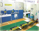 ここで作業場へ入る前のローラー掛けと手洗いを行います。一度に多くの人が出来るように、広さを十分に取っています。