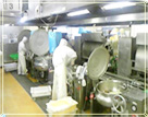 事前に調理準備室で専任者が原料や調味料を計量したものを加熱調理します。調理担当者は、計量作業は行わず、調理作業に専念して規格通りの調理品を作ります。